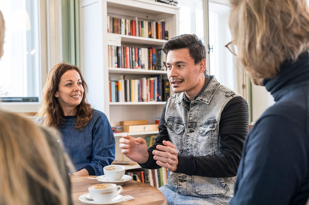 • Wenn Ihre Erzählcafé-Veranstaltung sorgsam moderiert und vorbereitet wird und den Richtlinien unserer Charta entspricht, können Sie als Moderator*in oder Trägerschaft gerne das Logo und Pressebild für Ihren Erzählcafé-Flyer oder andere Kommunikationsmittel benutzen.