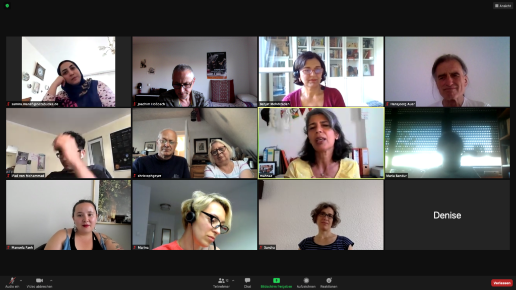 Unter den Gästen waren Menschen mit Krieg- und Migrationsgeschichten aus Deutschland, Sizilien, Afghanistan, dem Iran, Eritrea sowie aus der ehemaligen DDR online dabei.
