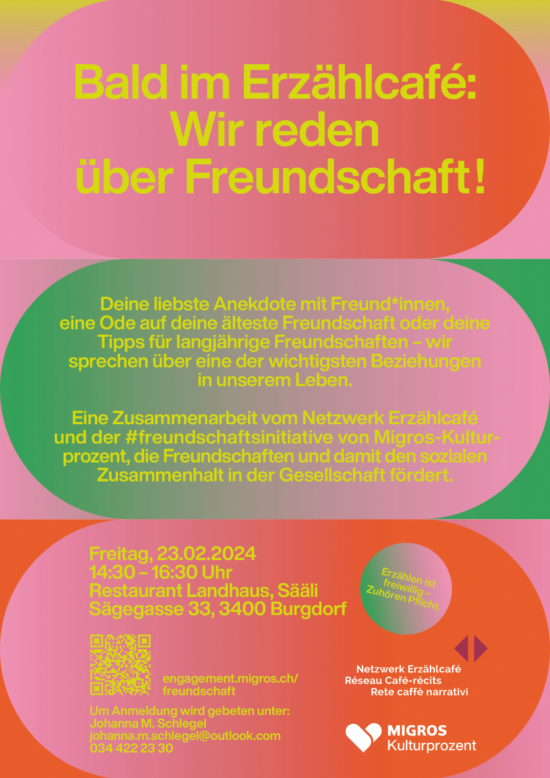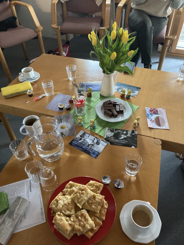Das Erzählcafé zum Thema Freundschaft bot viel Gesprächsstoff und 11 Gäste folgten der Einladung. Die Teilnehmenden berichteten von verschiedenen Freundschaften und Erfahrungen aus Kinder- und Jugendtagen, über das Erwachsenenalter bis zur Gegenwart. Es kamen glückliche, wie auch schmerzhafte Erinnerungen zur Sprache. Es wurde lebhaft diskutiert, was eine Freundschaft ausmacht. Es war eine lebhafte Runde mit viel Tiefe und Vertrauen. Für mich als Moderatorin gab es «nicht viel zu tun», da aus den Beiträgen der Teilnehmer:innen immer wieder neue Aspekte des Themas angeregt und beleuchtet wurden. In dieser Runde mit älteren Gästen wurde deutlich, wie wichtig Freundschaften sind und wie schmerzlich der Verlust von Freundinnen und Freunden im höheren Alter ist. «Es bricht ein Stück gemeinsame Erinnerung weg, die vertrauten Gesprächspartner fehlen, es wird stiller um mich herum.»