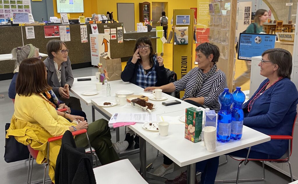 Als ich von der Fotoausstellung hörte, packte ich die Gelegenheit, als Rahmenveranstaltung ein Erzählcafé vorzuschlagen. Wir wählten das Thema «Die Rollenverteilung innerhalb der Familie», das ich interessant und breit genug fand, um uns gegenseitig Geschichten aus dem Leben zu erzählen. Am 16. April 2024 trafen wir uns in einer kleinen Gruppe von sieben Frauen im Filanda in Mendrisio zum Erzählcafé.