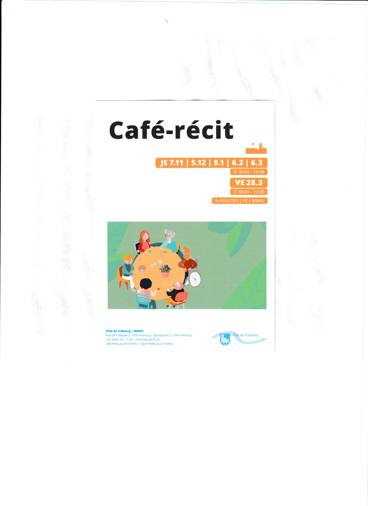 Un moment de partage en groupe où les histoires de vie, les expériences personnelles et les anecdotes sont au centre : voilà ce qu’est un café-récits ! Dans cet espace, chacun·e est libre de s’exprimer et l’écoute est essentielle. Après avoir évoqué ensemble grands et petits souvenirs, parlé des saisons, de chansons ou d’actualité, vous repartez léger·ère et imprégné·e de la magie du partage. Un moment de découverte pour toutes et tous. Snacks offerts. Avec Hélène Cassignol et le secteur de la Cohésion sociale.
