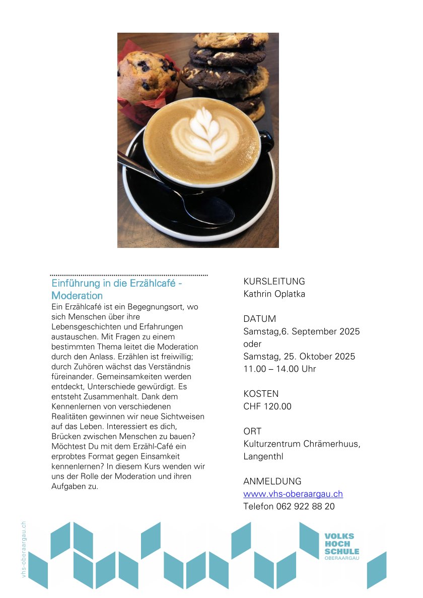 Wir erleben ein Erzählcafé und reflektieren gemeinsam darüber, lernen die Grundsätze der Erzählcafé-Moderation sowie den Umgang mit schwierigen Situationen kennen.