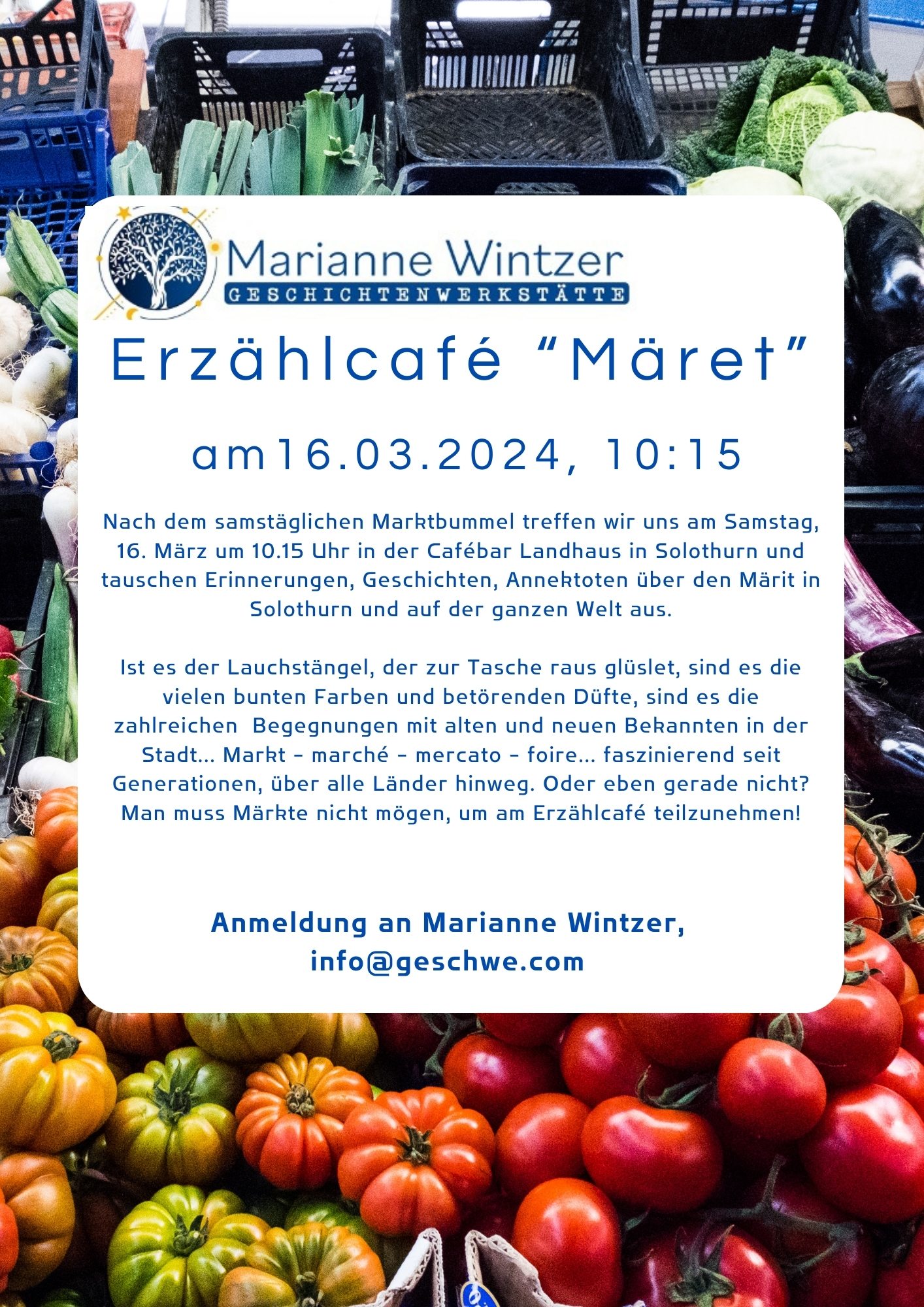 Nach dem samstäglichen Marktbummel treffen wir uns am Samstag, 16. März um 10.15 Uhr in der Cafébar Landhaus in Solothurn und tauschen Erinnerungen, Geschichten, Annektoten über den Märit in Solothurn und auf der ganzen Welt aus.