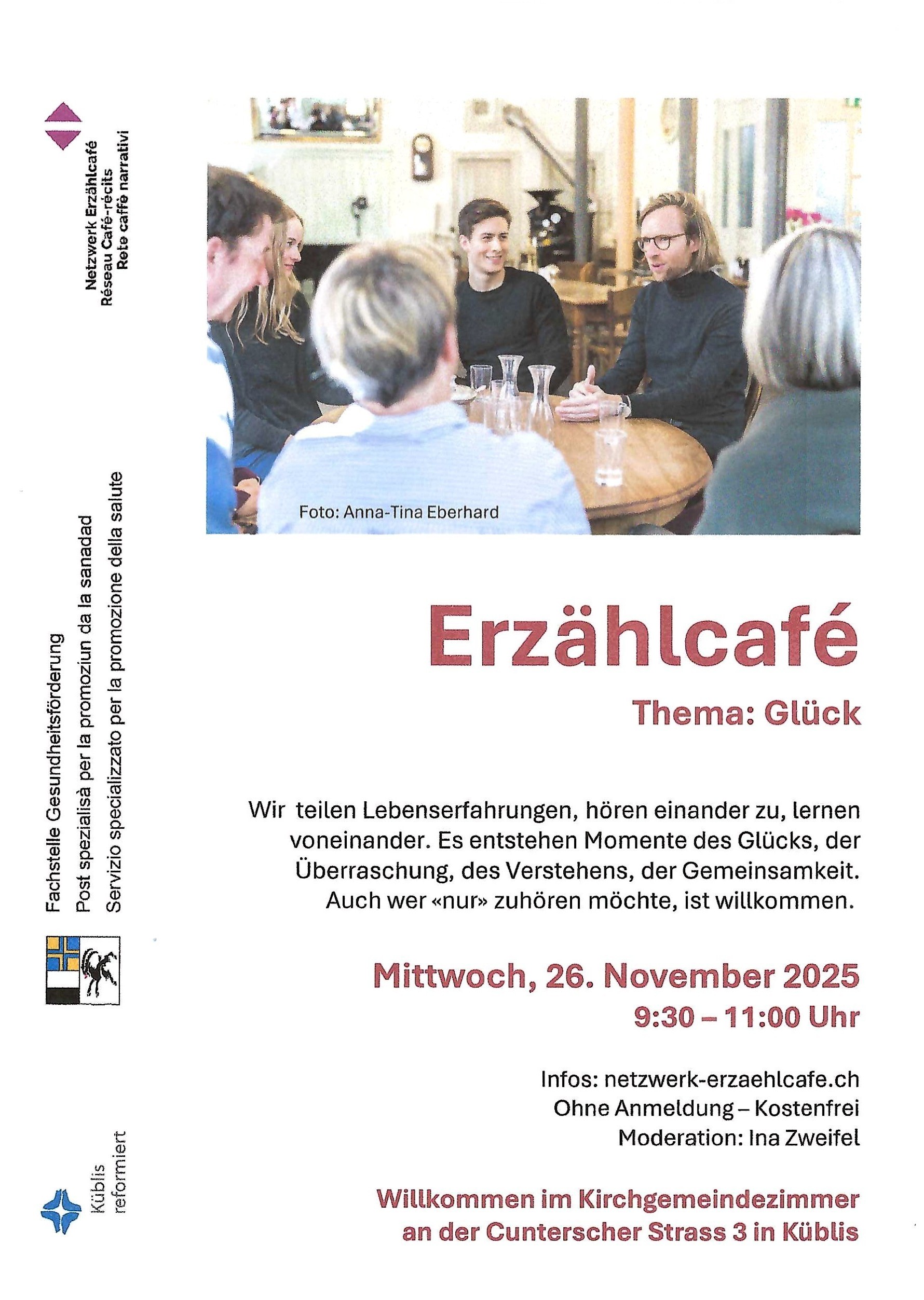 Was ist Glück? Wie empfinden wir Glücksmomente? Lassen sich Glück und Glücklichsein beeinflussen? Verändern sich Glücksgefühle im Laufe des Lebens? Solchen Fragen spüren wir im letzten Erzählcafé des Jahres nach. Und erleben vielleicht zusammen Glücksmomente.