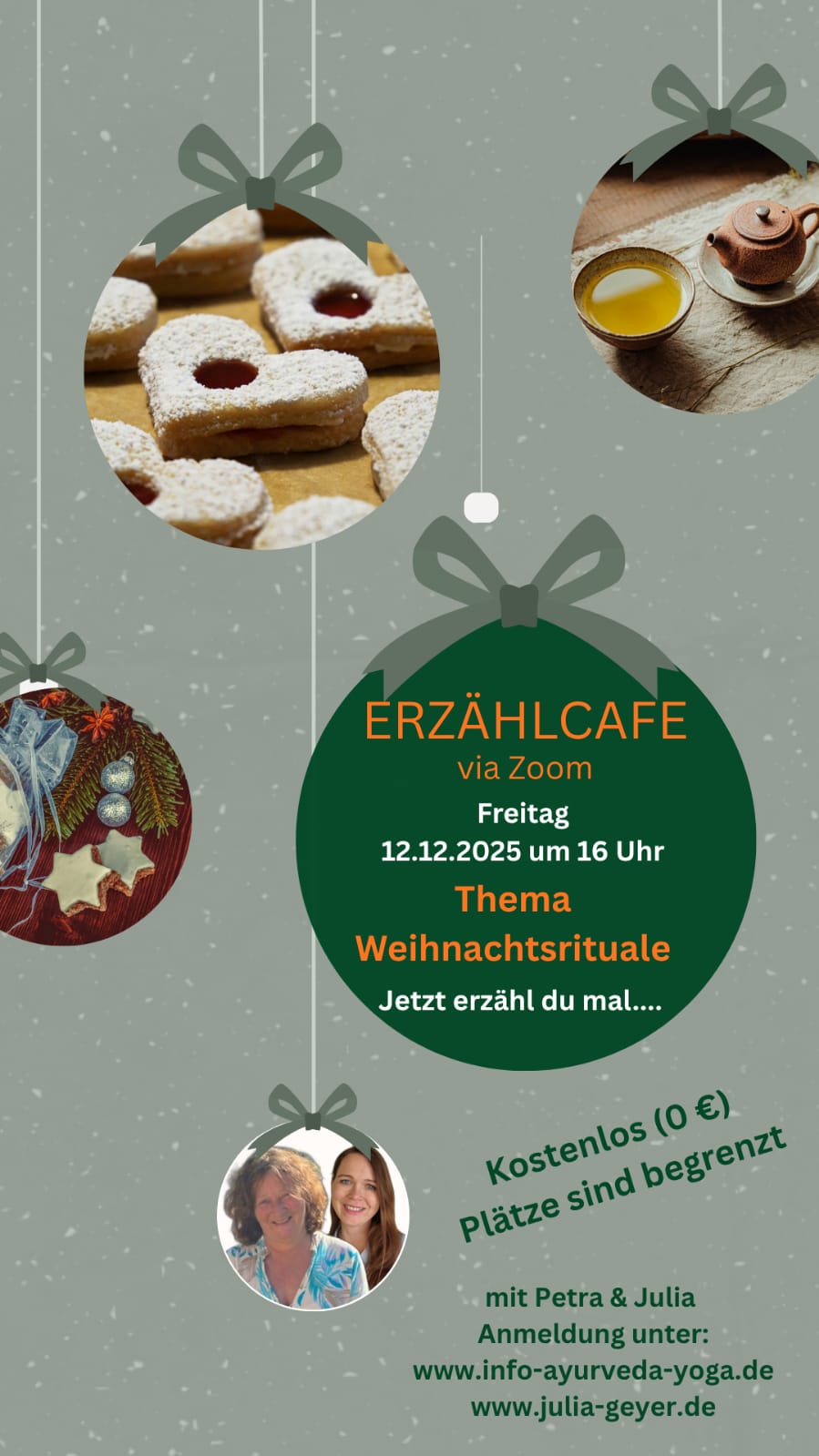 Einladung zum Erzählcafé mit Petra und Julia "Weihnachtsrituale"