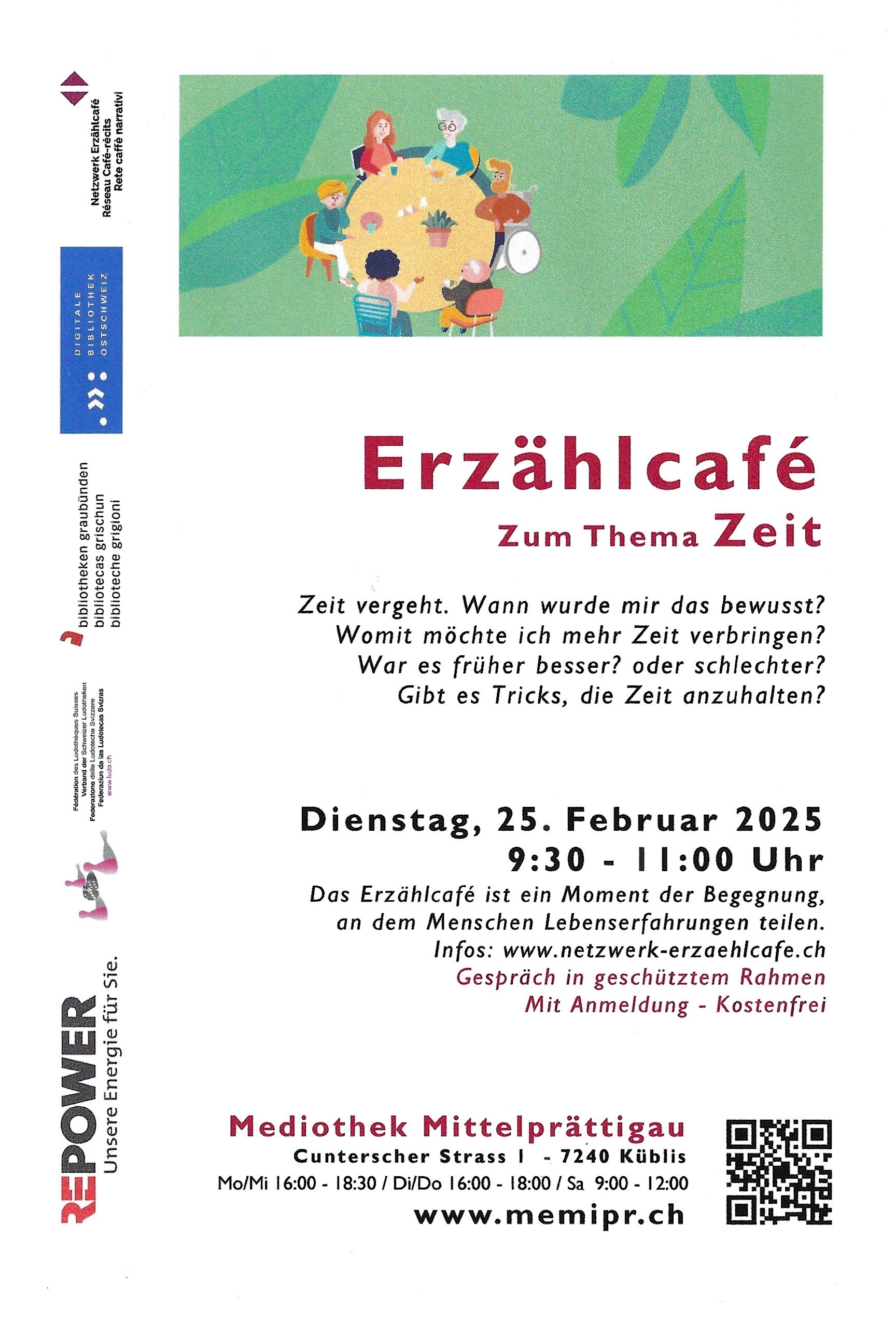 Zeit vergeht. Wann wurde mir das bewusst? Womit möchte ich mehr Zeit verbringen? War es früher besser? Oder schlechter? Gibt es Tricks, die Zeit anzuhalten? Was, wenn das möglich wäre? Solchen und ähnlichen Fragen gehen wir innerhalb etwa einer Stunde nach. Und geniessen die Zeit des Zusammenseins.